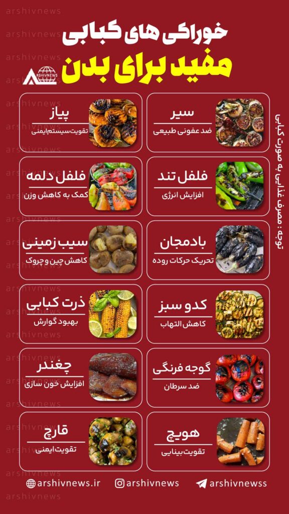 به گزارش آرشیو نیوز؛ کباب کردن بعضی خوراکیها یک روش سالم برای تهیه وعدههای غذایی است، زیرا این فرآیند به حفظ طعم و مواد مغذی غذا کمک میکند. در اینفو گرافیک زیر به برخی از مزایای کباب کردن خوراکی های سالم اشاره میکنیم: